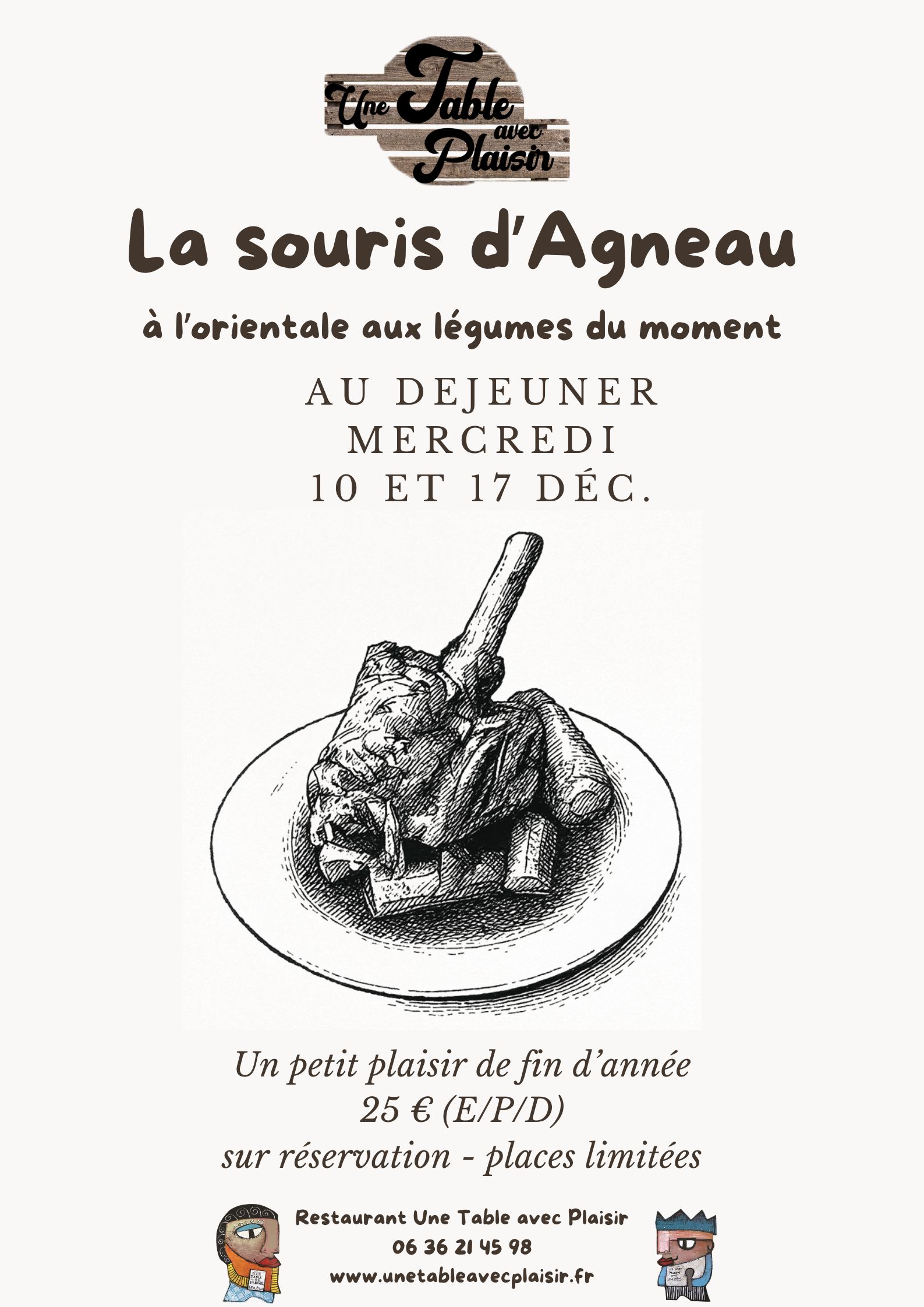 Seulement sur réservations les samedi midi, soir et dimanche midi, à partir de 8 adultes.