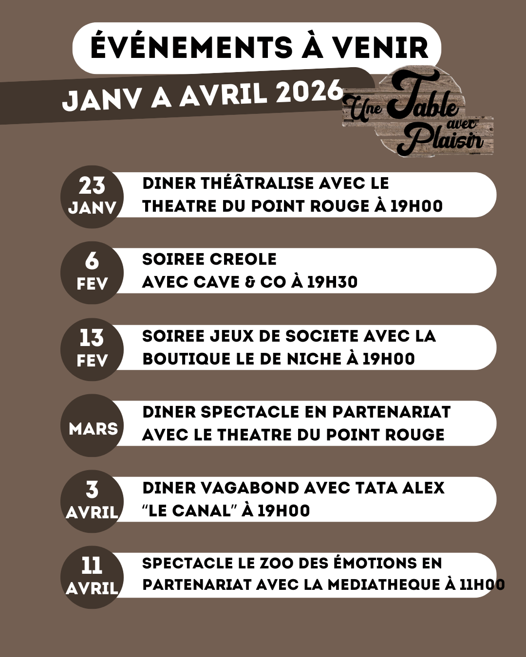 Seulement sur réservations les samedi midi, soir et dimanche midi, à partir de 8 adultes.